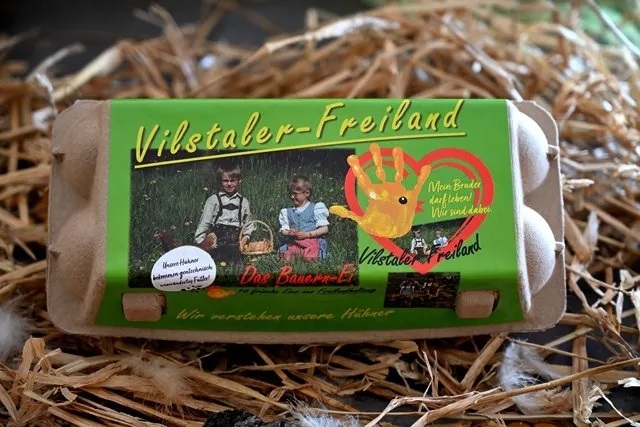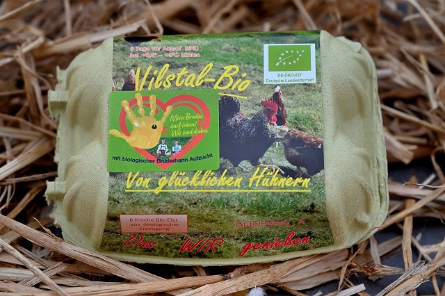 Die Freilandeier und Bioeier von unseren Hühnern vermarkten wir selbst in regionalen Lebensmittelmärkten.